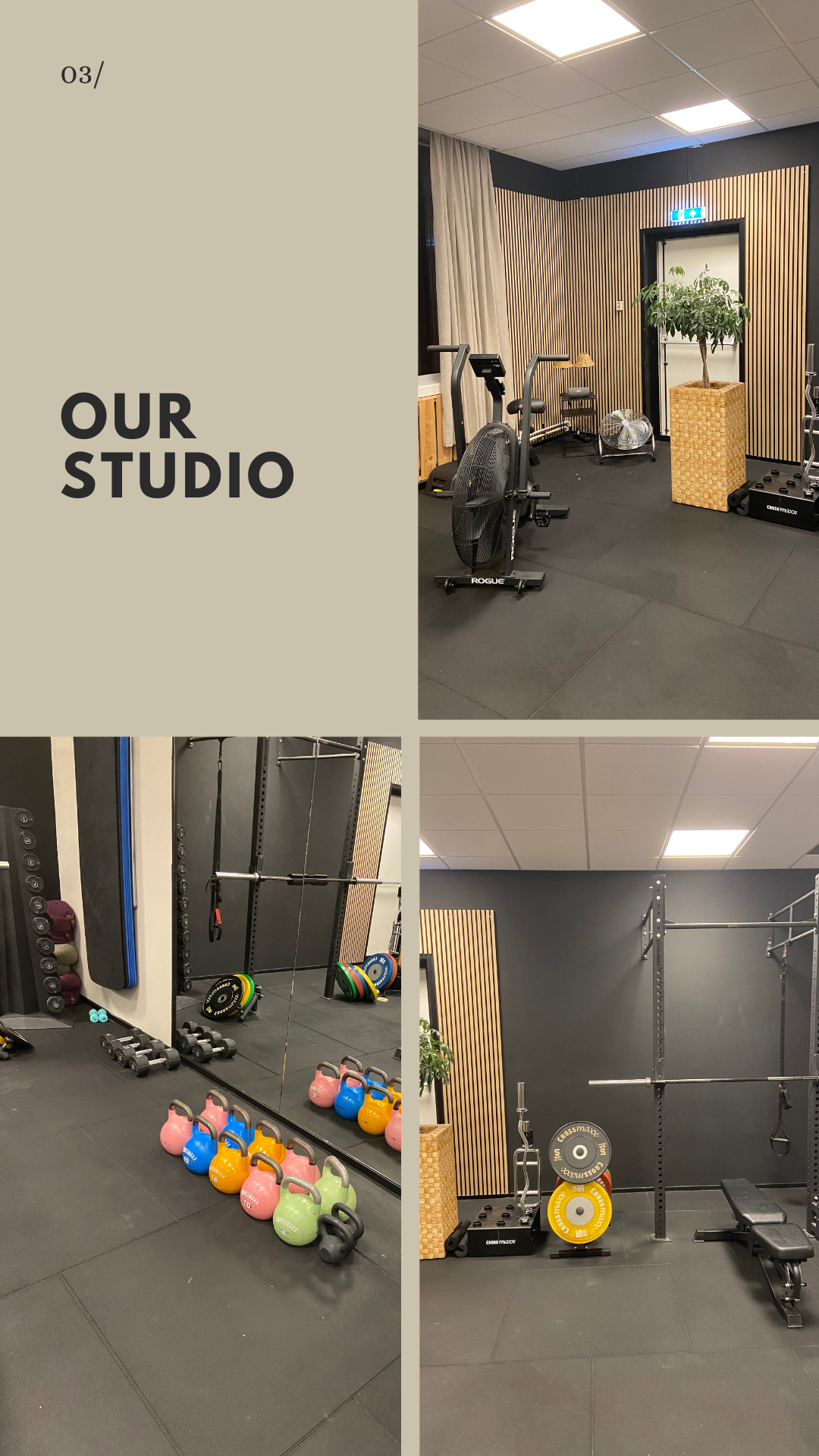 The studio features a range of versatile, space-efficient equipment, and all that is necessary to allow for a wide variety of strength, mobility, and functional training exercises. This allowing you to achieve your fitness goals efficiently and effectively in a setting designed for optimal and personal, training.
